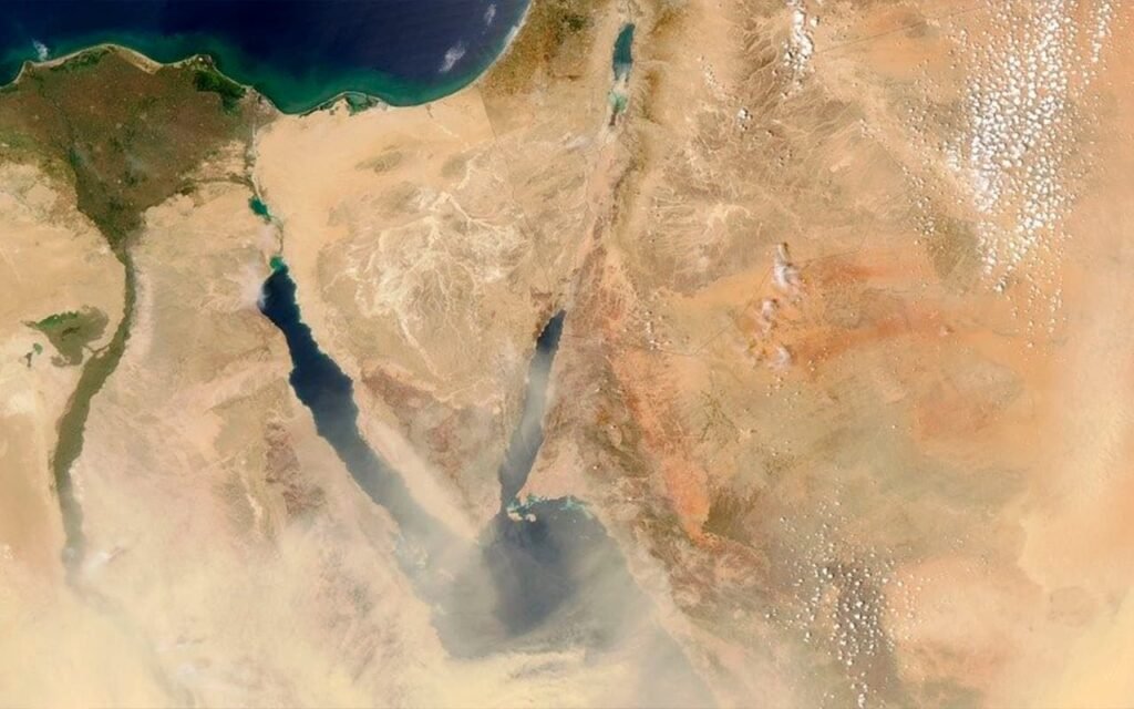 El Delta del Nilo forma un triángulo allí donde el río Nilo se extiende, justo antes de desembocar en el mar Mediterráneo. Los vértices son: