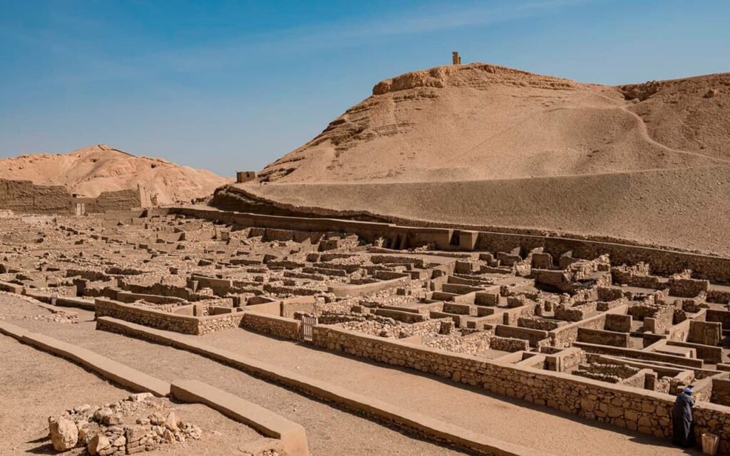 Un kilómetro al sur del Valle de las Reinas se encuentra Deir el Medina, la aldea donde se alojaban los artistas y artesanos encargados de construir las tumbas reales del Valle de los Reyes.