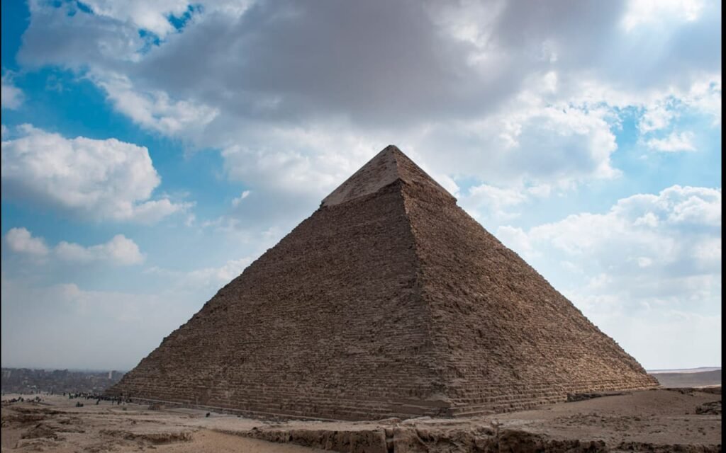 Sobre su vértice todavía se conserva parte del revestimiento original de caliza de Tura, que resalta su color blanquecino.